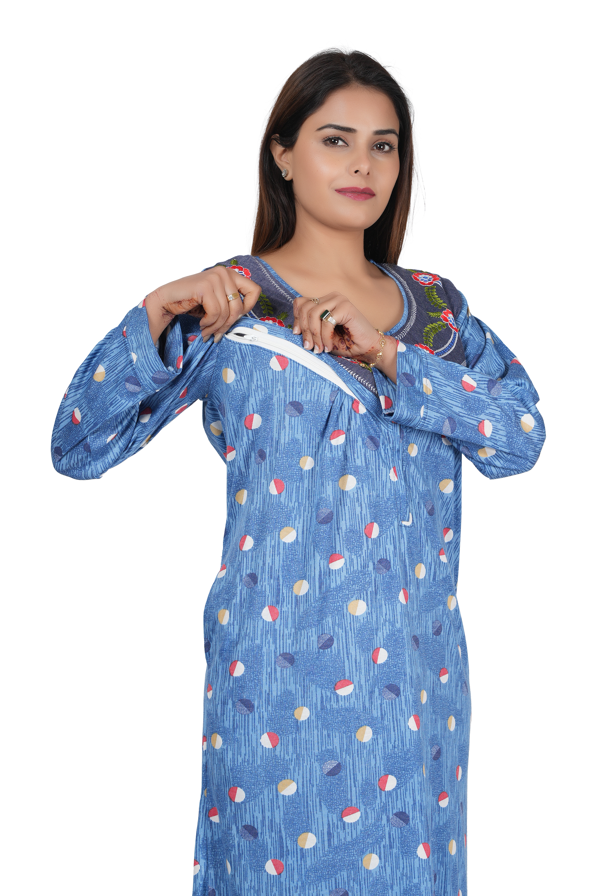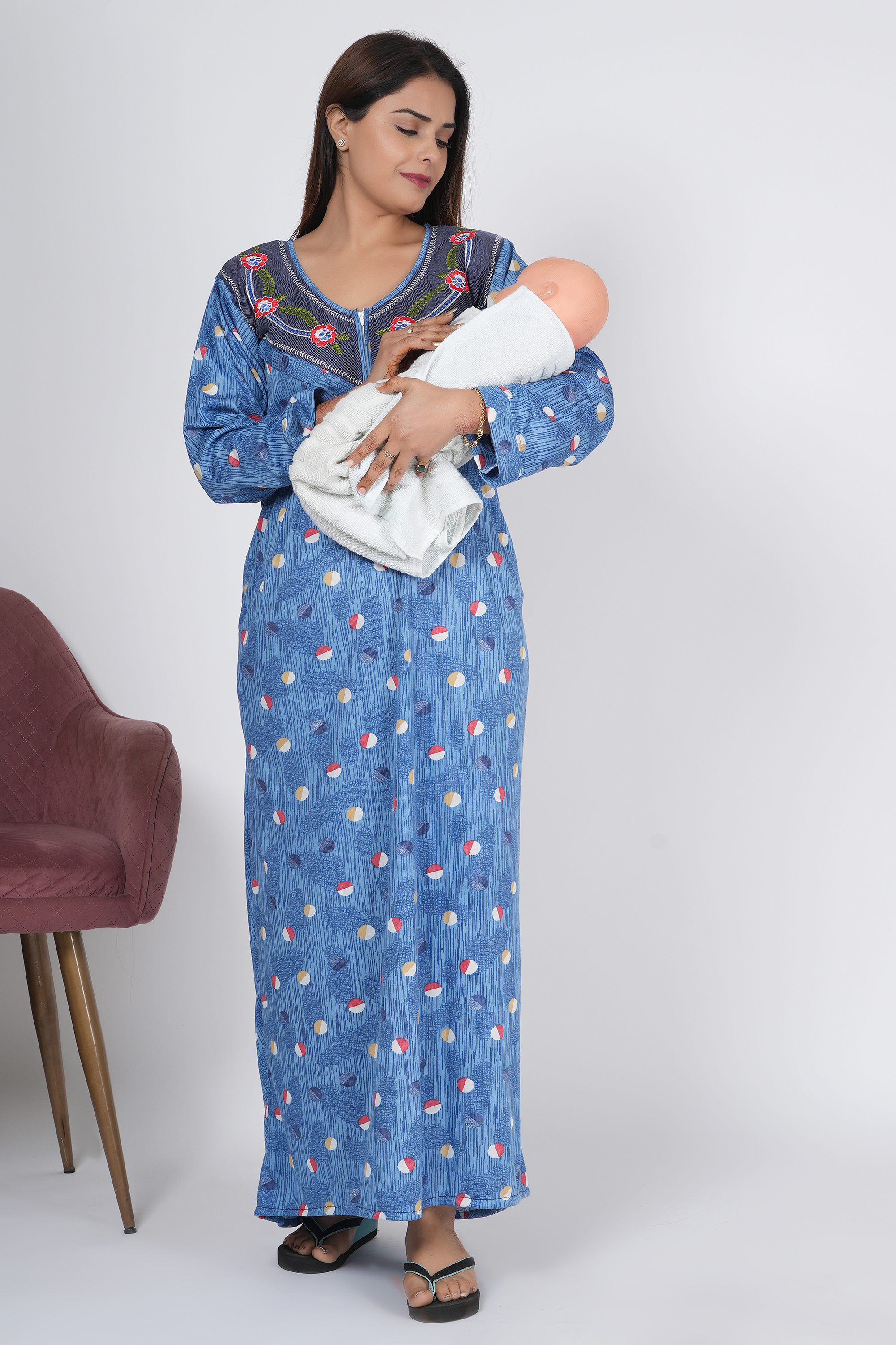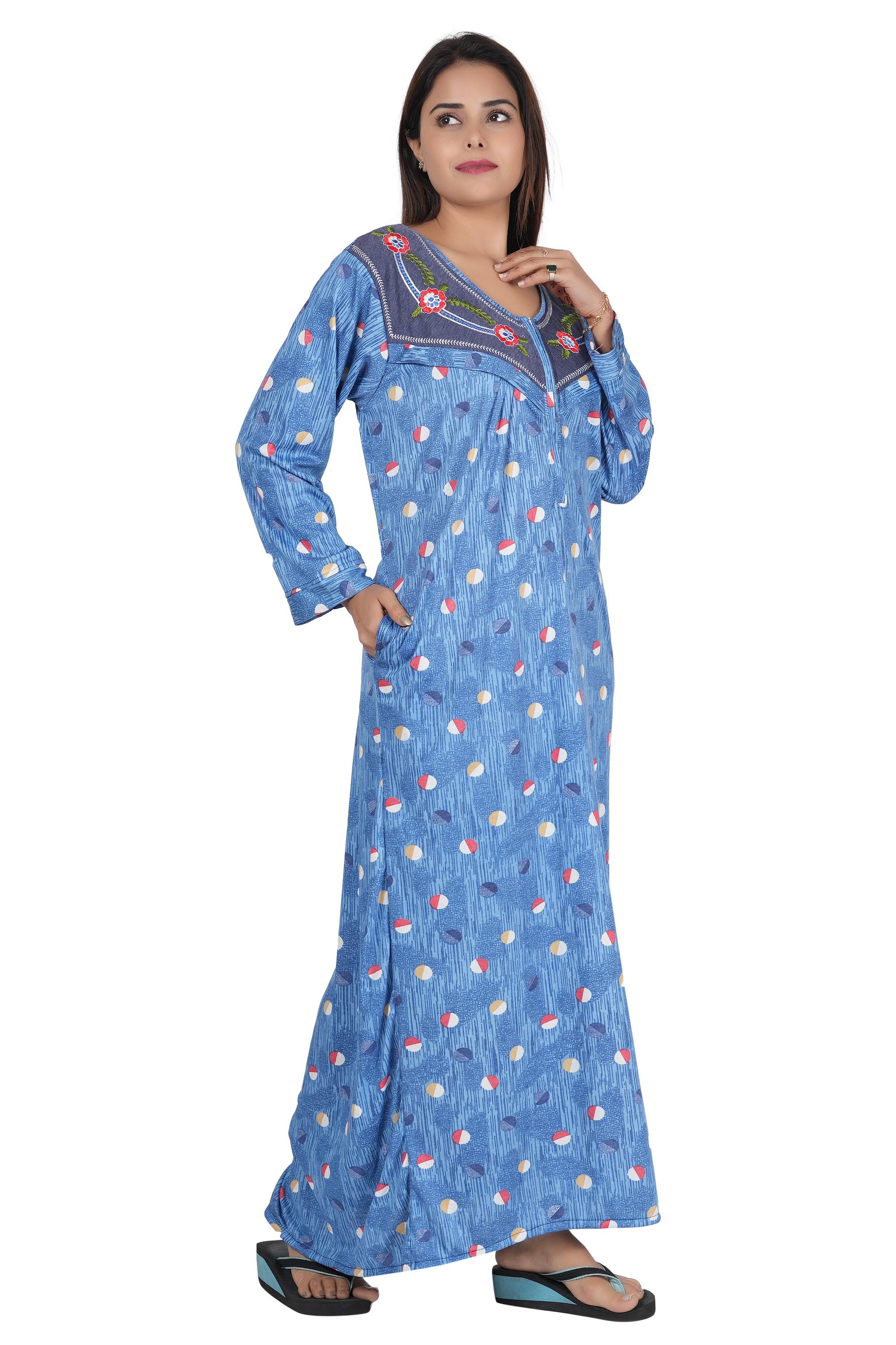 Nighty is a comfortable, loose-fitting garment typically worn by women for sleeping. Made from soft fabrics like cotton or silk, it ensures a restful night's sleep.